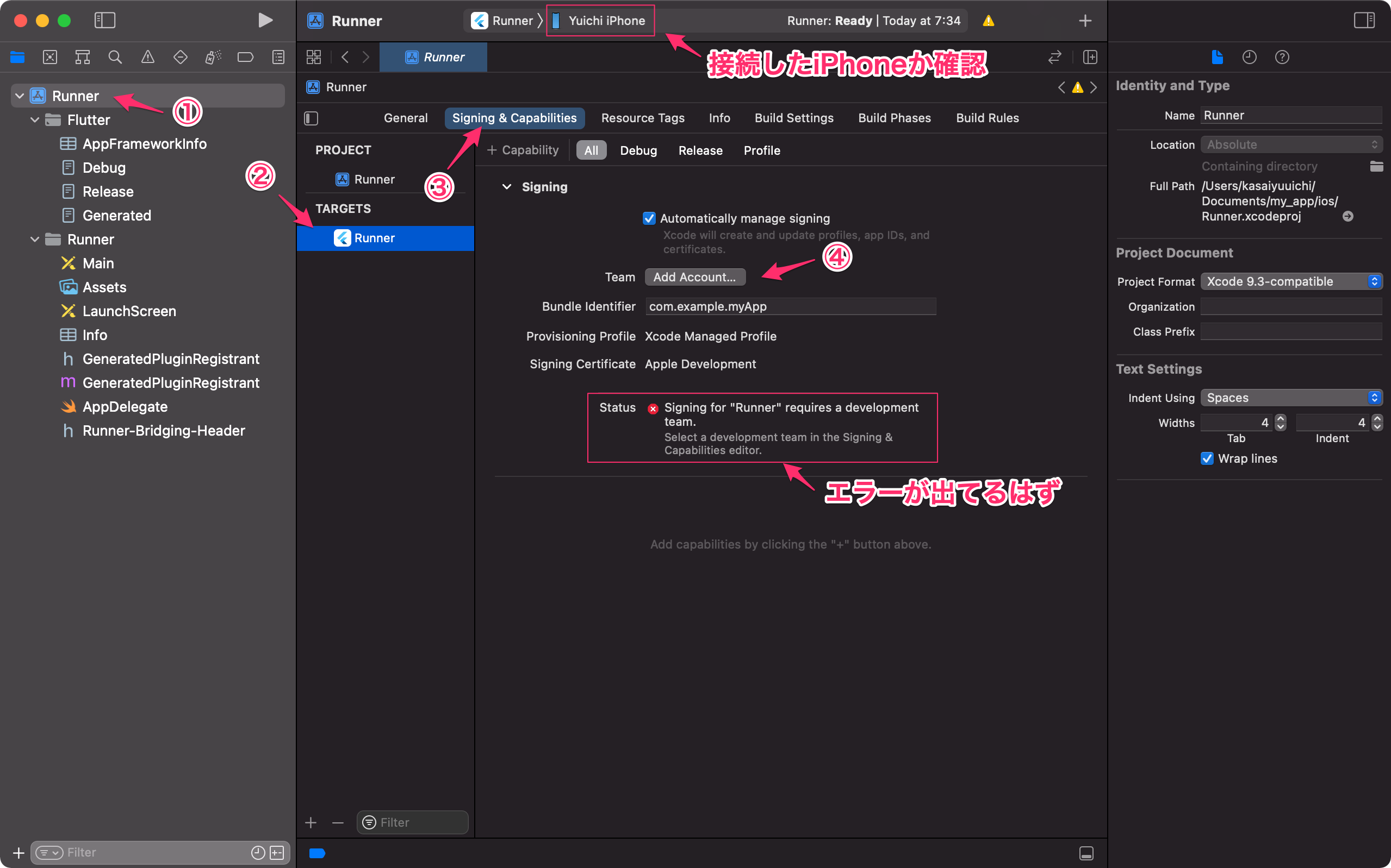 - 「Signing & Capabilities」をクリックTeamとたどって