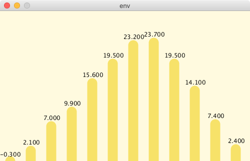 テキストファイルを読み込んで、図のような気温(日平均)のグラフを描きなさい。画面サイズ対応はしなくていいです。1月と12月のグラフが切れていてもOKです。(STEP2で直します)