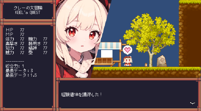 アイテムと接触した場合や、メソッドを呼ばれた場合、メッセージウィンドウになにのステータスがアップしたかを表示して、エモーションも表示されるようにする。