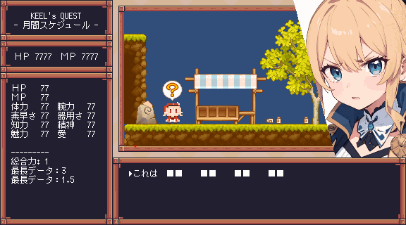 • シーンの生成…上記スケジュールのネタ(アルバイト、魔法学校での勉強、冒険)などを実装