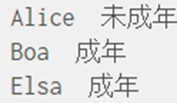 以下のような配列があったとき、成年か未成年かを判定して表示しなさい。