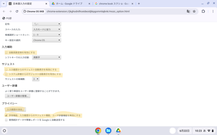 「入力方法」グループの「日本語」項目の「□➚」ボタンを押下