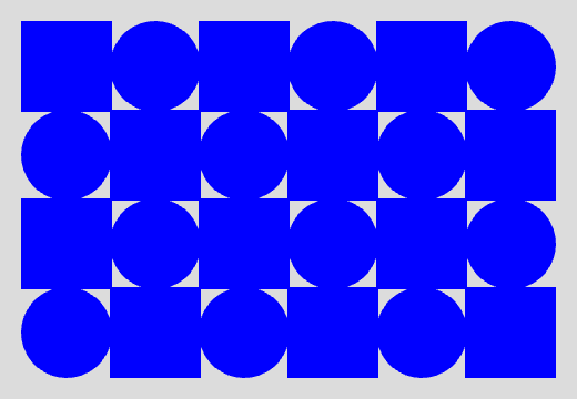 2つの図形を交互に繰り返し模様を描く。どちらの図形を描くかは剰余を使って決める。