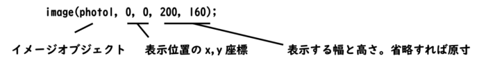- draw関数内で、image関数によりイメージを表示。