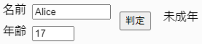 名前と年齢を入力し、未成年か成年か判定して表示しなさい。