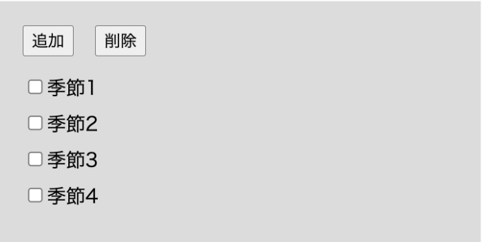 最後の応用問題として、チェックボックスを動的に追加・削除できるようにします。ボタンを使ってチェックボックスを追加したり、削除したりする処理を実装することで、配列操作やDOM要素の動的生成について学びます。
