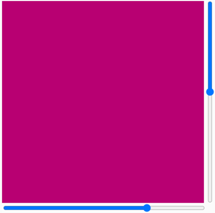 横スライダーを赤成分、縦スライダーを青成分として、背景色を表示する。