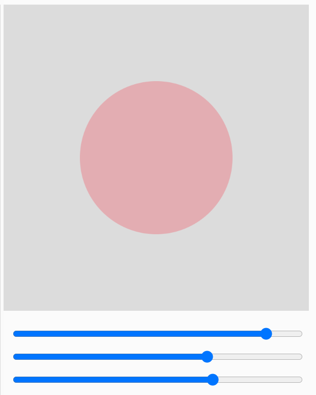 スライダーを使って、円の色を変更できるようにします。3つのスライダーでRGB値を調整します。
