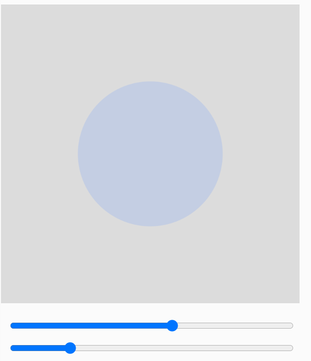 スライダーを使って、円の大きさと透明度を変えられるようにします。