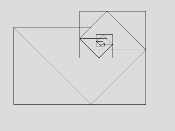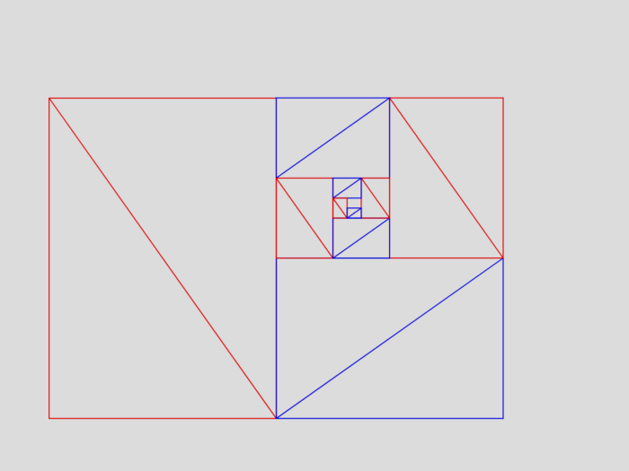 ・長方形の内部角度や最初の角度を変えることで長方形の比率を変えて幾何学模様を描くことができる