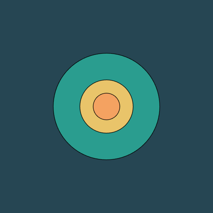 下記の基本の円に対して、半分の大きさと、倍の大きさの円をそれぞれ描きなさい。