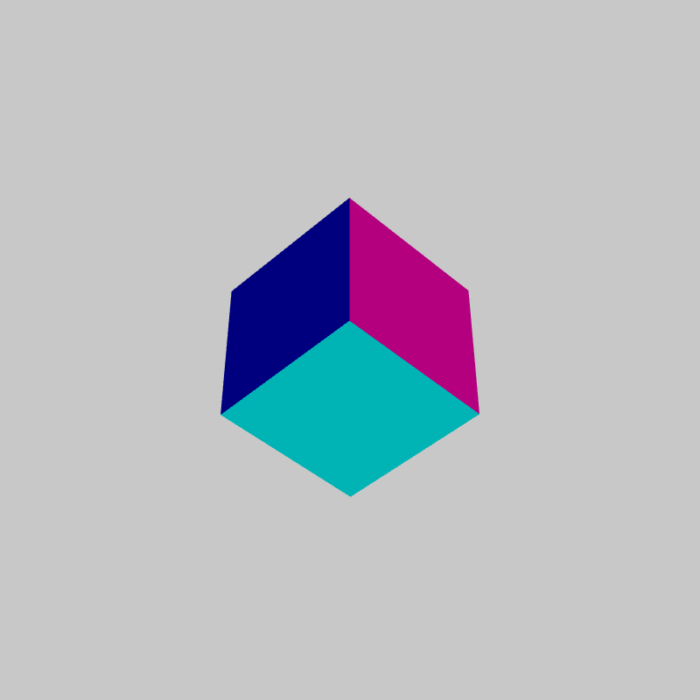 立方体を、frameCount を使って回転させる。rotateX() と rotateY() を使って、立方体をなめらかに動かそう。
