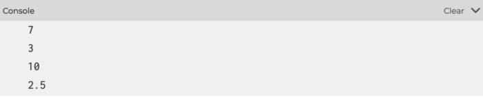 変数a、bにユーザーから入力した値を格納し、aとbの四則演算の結果をプロンプトに表示するプログラムを作りなさい。