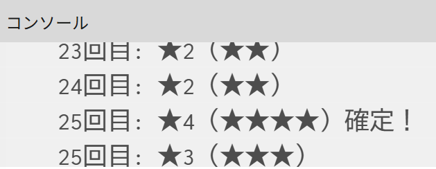 print(n + "回目: ★4(★★★★)確定!");
