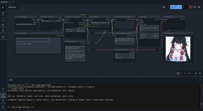 KayWaii V9 で以前の雰囲気は再現できたので一旦満足だが、SD1.5 系はすでに旧世代。新しいキャラ用 LoRA も増えず、更新も止まっている。これでは新キャラは召喚できない。つまり、今月中旬に実装予定のコロンビーナ(原神)を召喚することはできないということになる…