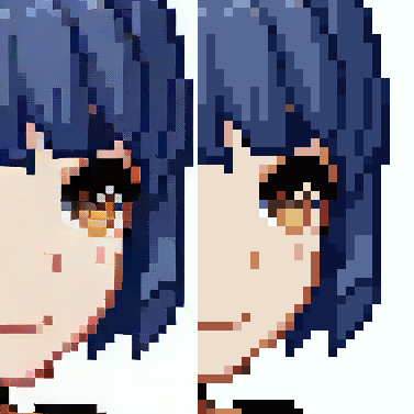 これを神ツール spritefusion-pixel-snapper でちゃんとしたドット絵に。瞳の虹彩を見るとよく分かる。