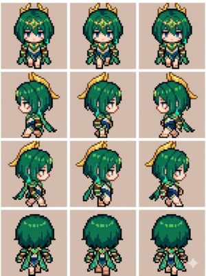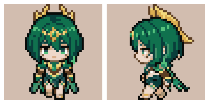 それっぽいものも出力できるけど、画風やドット絵の解像度的な部分まで指示するのが難しい。