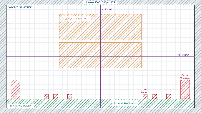 昨日、画面解像度について詰めた結果、ユーザーの画面解像度を1280×720と想定した場合、ゲーム世界を320×176の解像度で作ると、16×16のマップチップ換算で20チップx11チップの世界になる。これが想定画面に拡大されると4倍に引き伸ばされ、1280×704となり、上下に8ドットずつの余白が出来る想定だ。